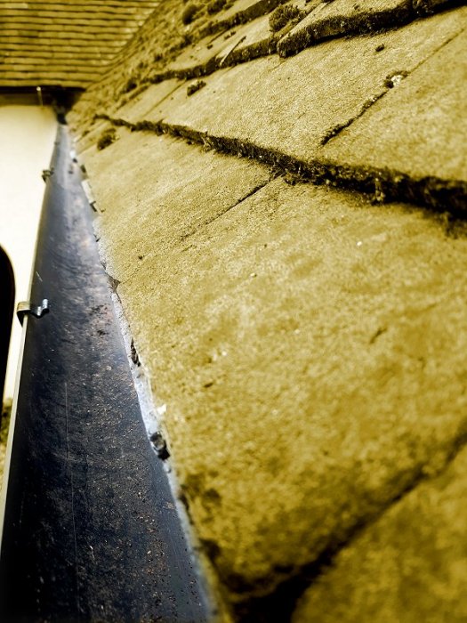 Of course, having a gutter is one thing; having a working gutter is quite another. Almost every season seems out to pick on gutters in particular. From the creaking and cracking heard during those all too short summer days, the nesting of birds in spring, through to the sudden drop of leaves in the autumn and ice dams in the winter. Over time gutters can spring leaks, but probably the most common issue is actually just beyond the gutter, in the downspout. With every fresh shower, any leaf litter or loose moss will flow down to the outlet. Here the water drops away, leaving behind the debris to build up and cause a blockage. Wherever the flow is not sufficient to continually wash away any algae growth, this too can accumulate and create a blockage. Before you know it, water has nowhere to go and starts to back up, adding weight to the clips and supports, and allowing water to overflow behind the eaves casuing damp and mould growth on walls and ceilings. In some cases the wooden boards behind UPVC cladding can rot away leaving nothing to support the gutter, as well as the cladding itself and any other fixings such as telephone wires. Whilst this may be a tad over-dramatic, the potential for regular maintenance to avoid costly repairs cannot be understated.